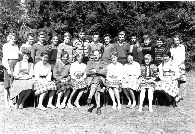 Her var det mange kjente fjes, - og noen ukjente. Men dette bildet er da ikke mer enn snart 50 år (er det virkelig så lenge siden!!), så det er sikkert noen fra kullet som tar alle navna på strak arm. Det var den tida jentene gikk i skjørt og lærerne hadde kvitskjort`og slips, knickers og rosåthøssu.