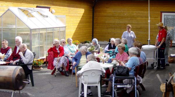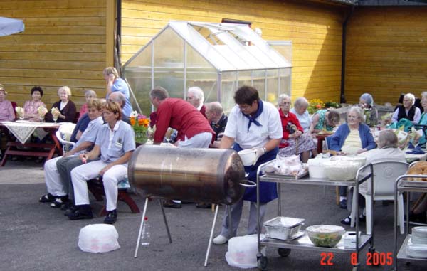 I "bakgården" i 2. etg. ved Rindal Helsetun slo de til med grilldag 22. august. Komiteen som tok seg av kontakten med værgudene, nådde også fram, for det var lettskyet/fint vær og ca. 24 grader, rapporteres det. Rundt 70 personer deltok. Musikk hadde de også, og en liten svingom ble det. (Foto: Lars Inge Kvande)