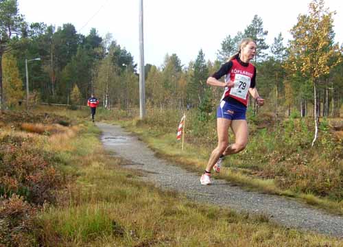 Kirsten Otterbu Melkevik ute i løypa, i suveren ledelse.
