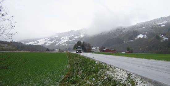 Midt-Norge har fått smake litt snø i går og i dag, med diverse trafikkrabalder til følge. I Rindal tror vi det har gått noenlunde bra, selv om redningsbilen til Rognskog var en tur på Skogen i formiddag. Vest i bygda er det nærmest bart: