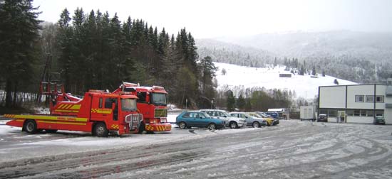 Begge bergingsbilene til Rognskog Bil var inne (halvtolv-tida 27. okt.), men hjulspora viste at