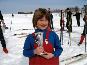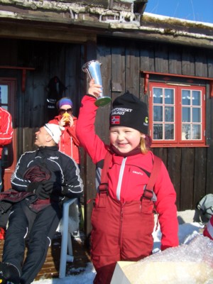 Til venstre 1983: 2-premievinner Gunvor Landsem 10 år. Tro ikke at det med lua ned i øynene er tilfeldig! Slik skulle det være etter datidas langrennsidol: Britt Pettersen. Til høyre 2005: Pokalvinner Inga Landsem, 6 år, datter til Even Landsem.